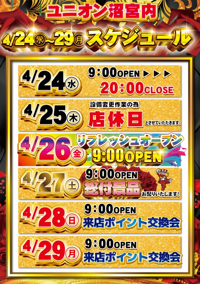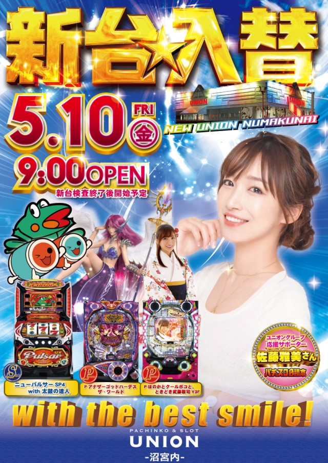 明日☆ユニオン沼宮内☆【新台入替】朝9オープン!!