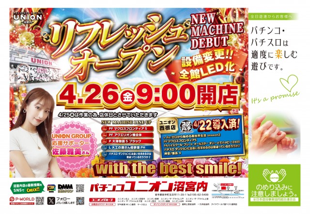 明日☆ユニオン沼宮内☆【スマスロ新台入替】