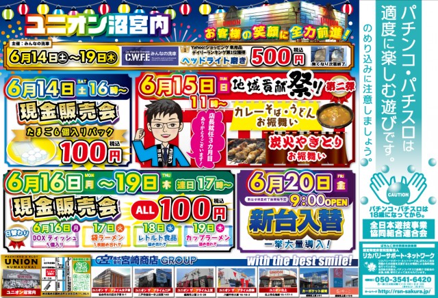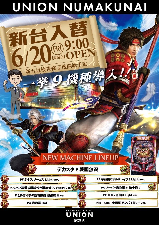 本日☆ユニオン沼宮内☆【新台入替】朝9オープン!!