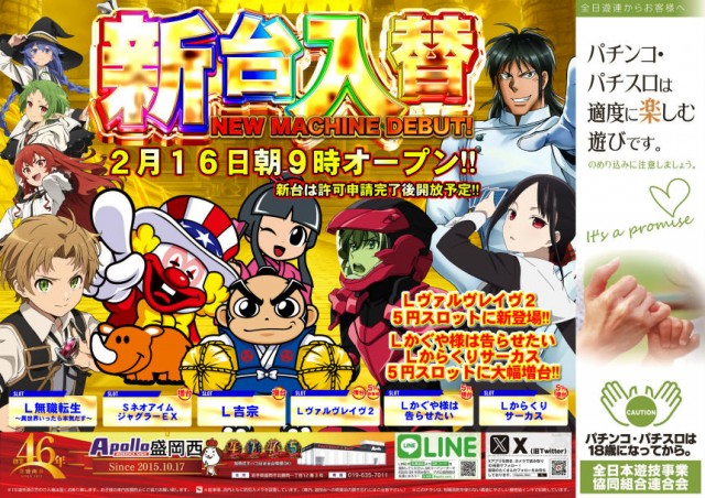 本日 2月16日(月)新台入替!朝9時オープン!!