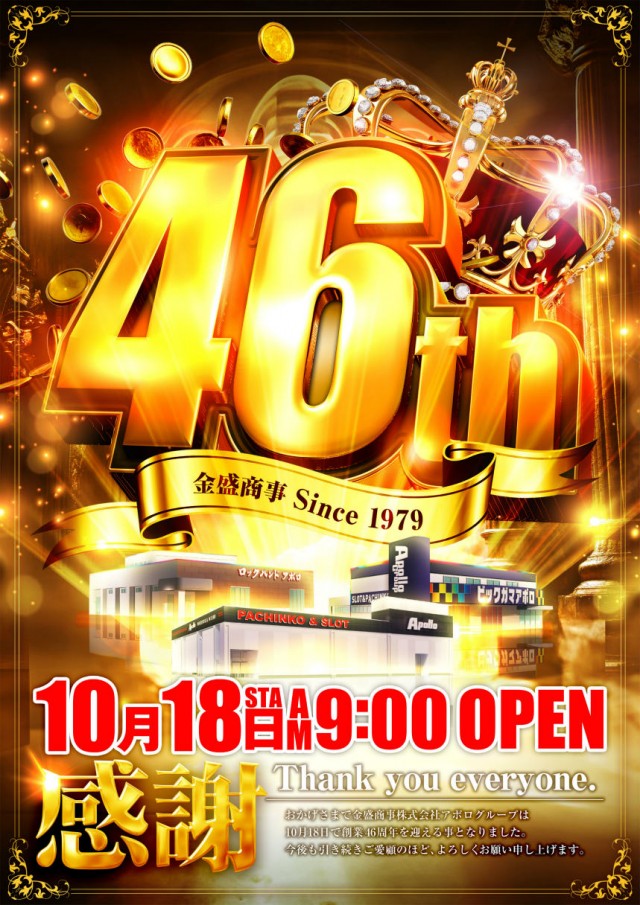 明日 ➊➑日金盛商事❹❻周年 ➒時オープン!