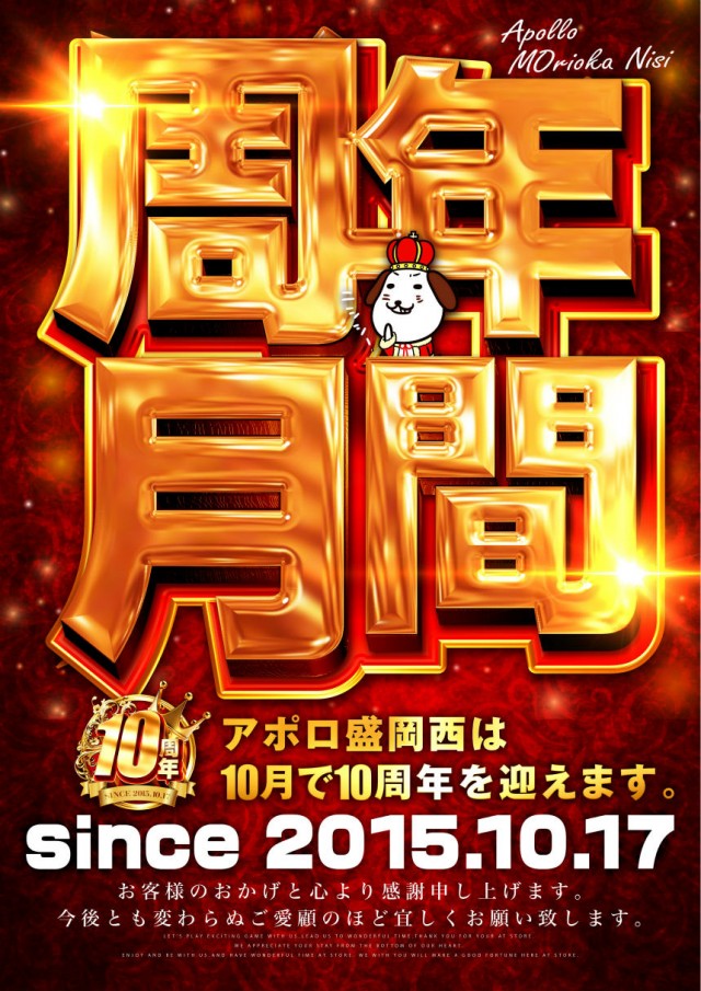 本日 おかげさまで❿周年🎂さあ、行こう‼アポロ盛岡西🎊🎉