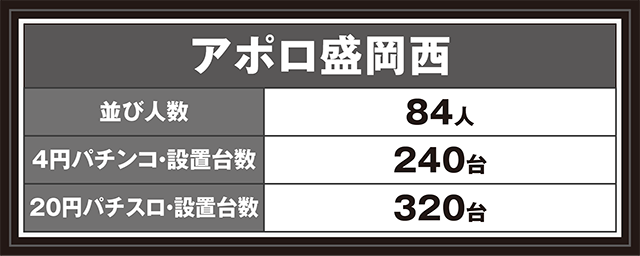 2月7日、岩手県盛岡市にある「アポロ盛岡西」へと向かった。今回の取材は、「本気取材」だ。幅広い機種でプレイヤーたちは遊技を満喫している印象。最新機種も輝きをみせた。