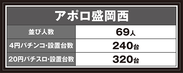 2月11日、岩手県盛岡市にある「アポロ盛岡西」へと向かった。今回の取材は、「本気取材」だ。パチンコもパチスロにも、本気で楽しんでいるといった姿アリ。明るい雰囲気となっていた。