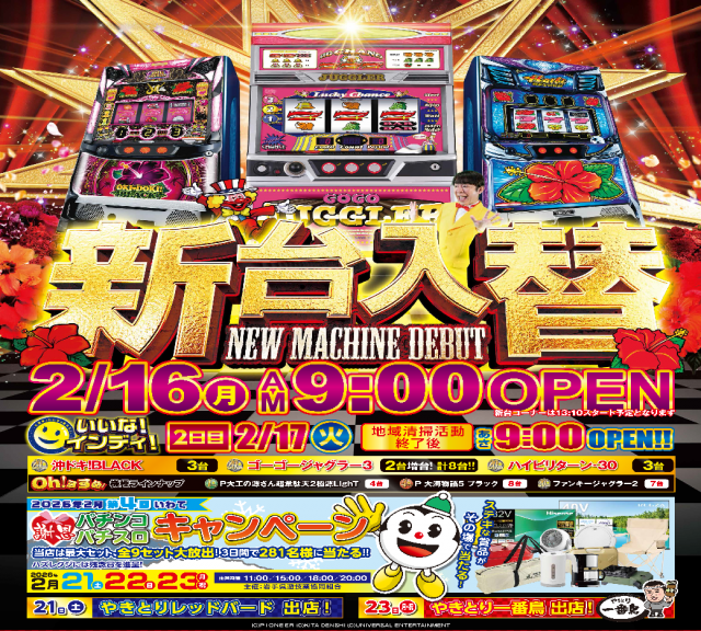 あす2/16🌈新台入替🌈あさ9時OPEN❗❗