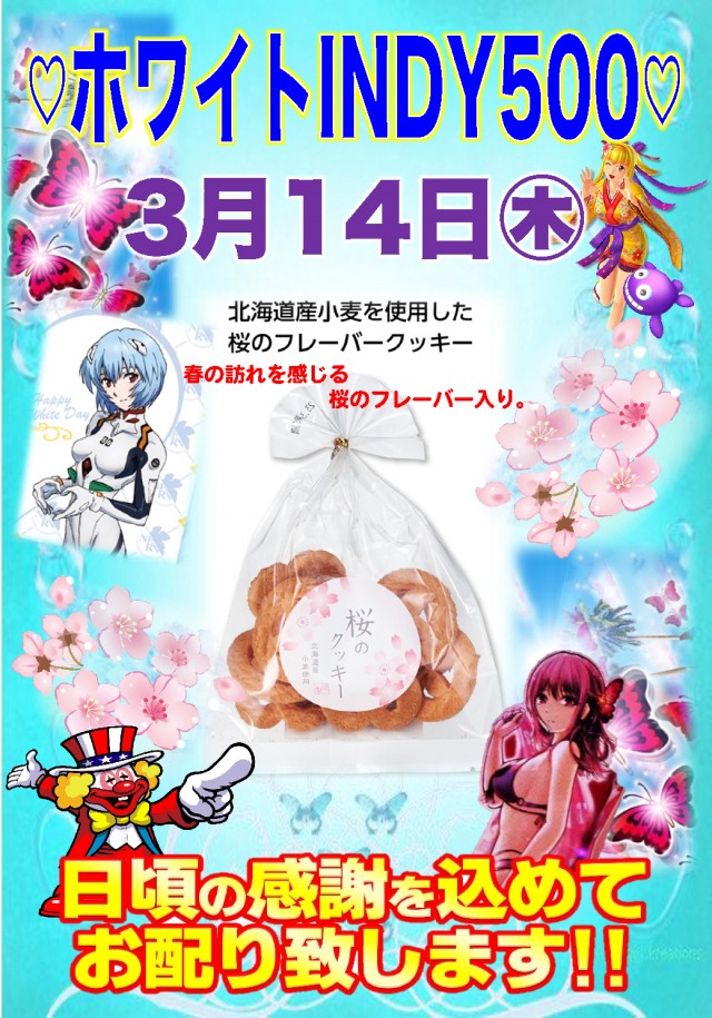 本日3月14日💙ホワイトINDY500💙朝9時オープン💎