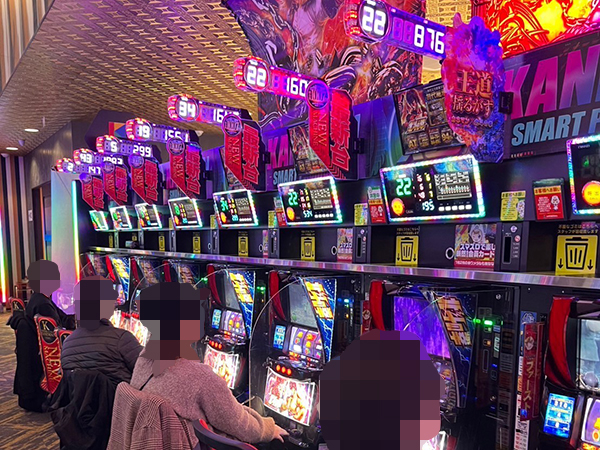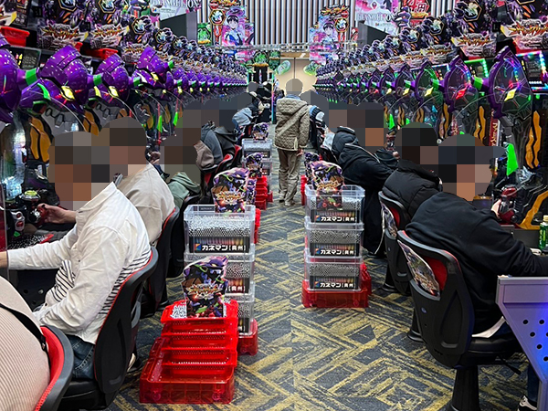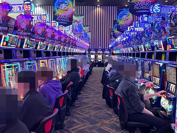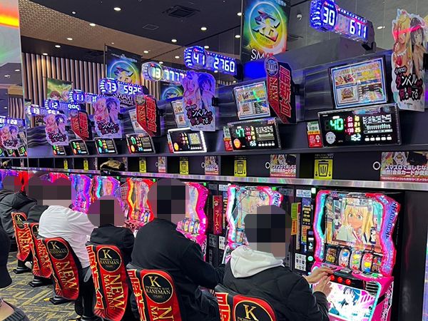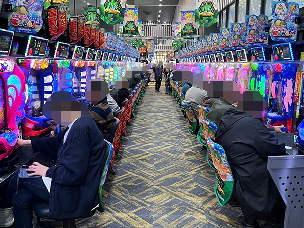 取材時は既に多くのプレイヤーが集結し、パチンコ・パチスロを問わずにぎやかな状況となっていた。