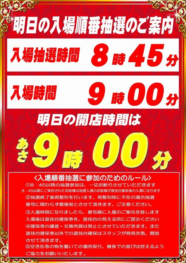 本日新台入替!9時OPEN!!!新台は午後スタート!!!