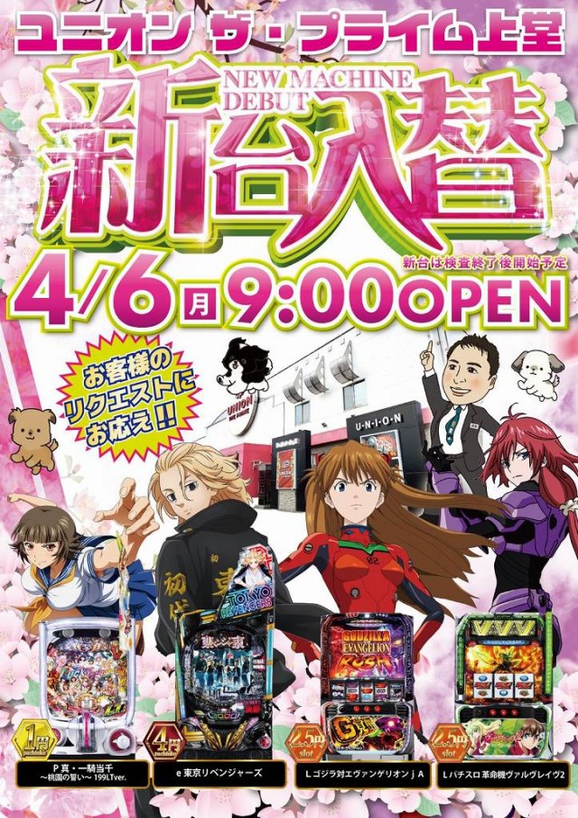 本日新台入替!9時OPEN!!!新台は午後スタート!!!