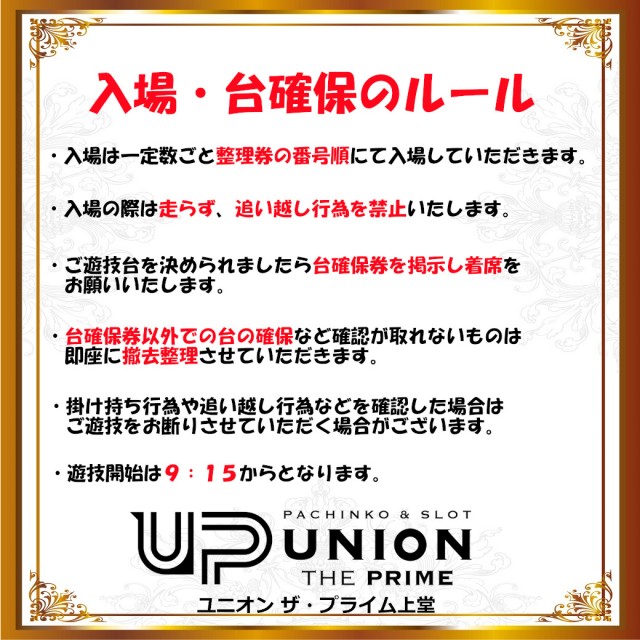 本日28日【感謝】8時50分~入場抽選開始です【UP上堂】