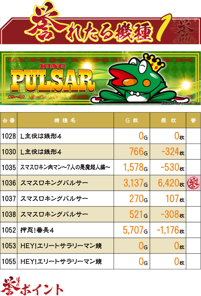 果たして6月21日(金)のパチスロコーナーにて【誉】を見つけることはできたのか?