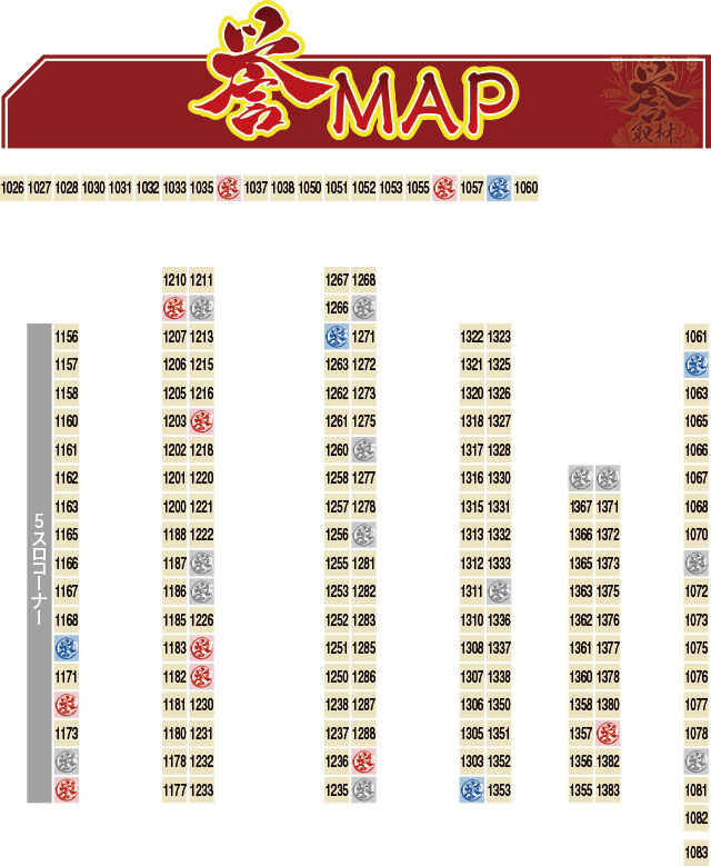 人気マシンは並びで優秀台が配置されていたのか。その真偽は定かではないものの、2台並び・4台並びで優秀台挙動を見せていた。だからこのブロックには誉マークが多かったと推測される。