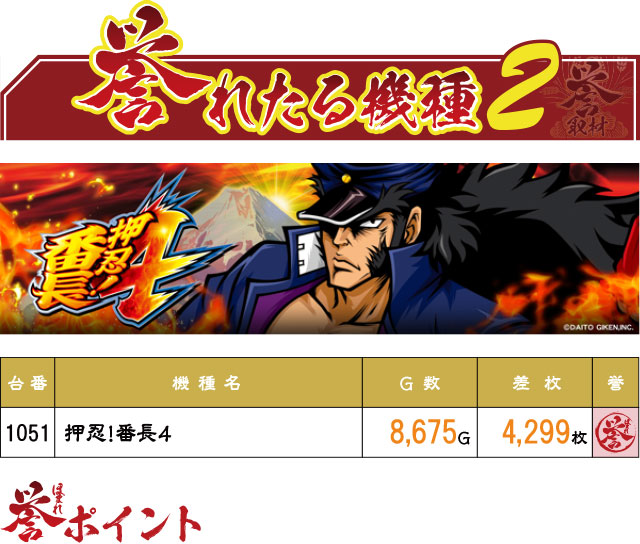 同じく2台設置の『押忍!番長4』も1051番台が奮闘し、危なげなく+4,000枚超えを果たした。その他の2台設置機種にも1台が優秀記録という結果が見られ、もしかしたら2台設置機種はニブイチだった可能性も…!?
