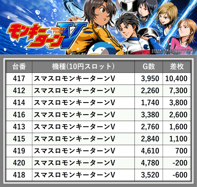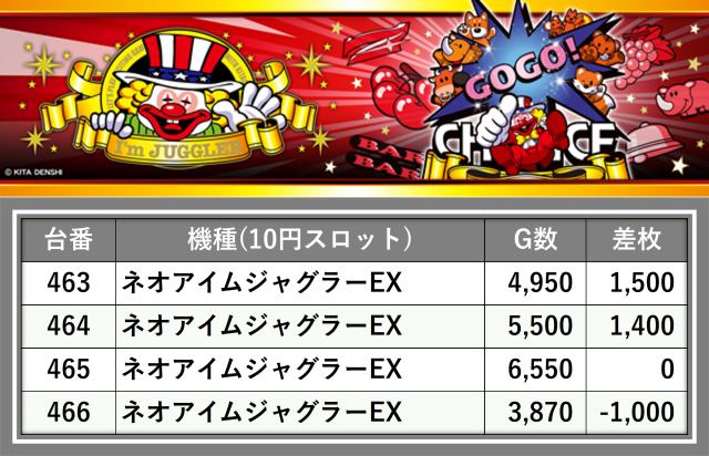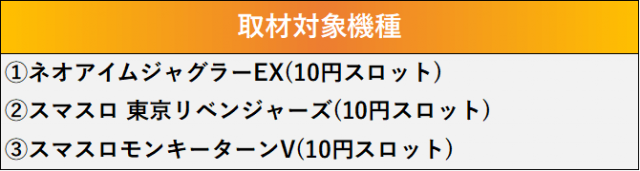 厳選された取材対象機種をはじめ、その他スロット全体から好記録が飛び出した!プレイヤーが楽しんだ1日を下記データにて振り返ってみて欲しい。
