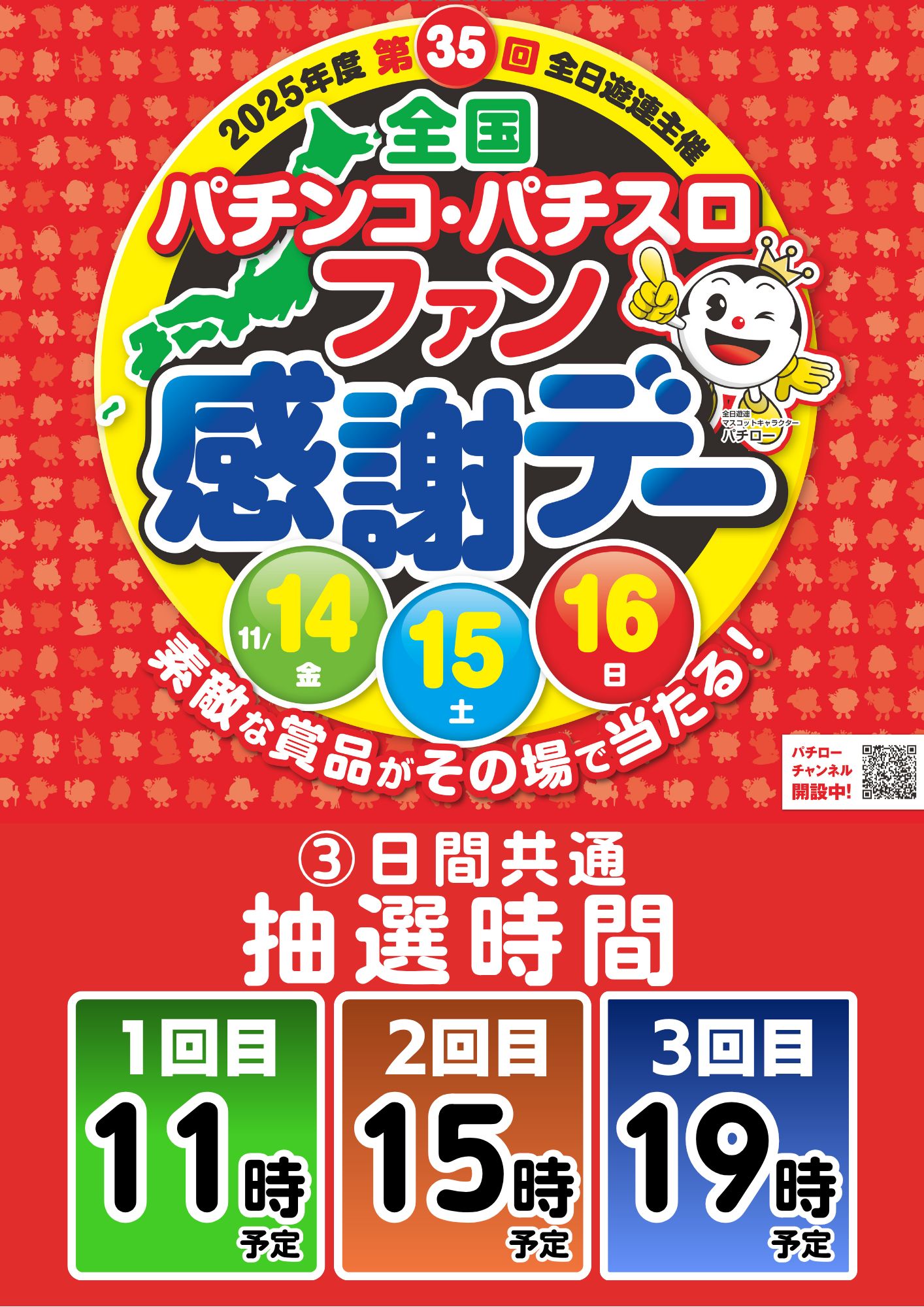 本日より3日間全国パチンコ・パチスロファン感謝デー開催