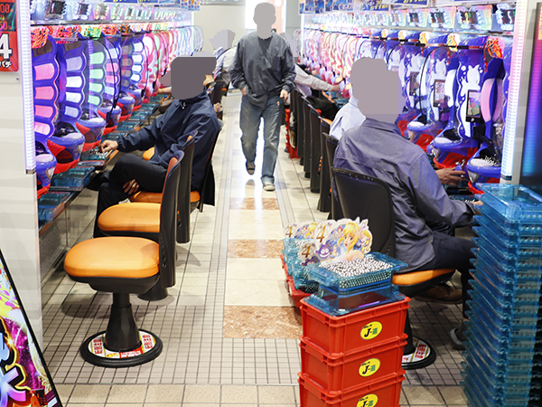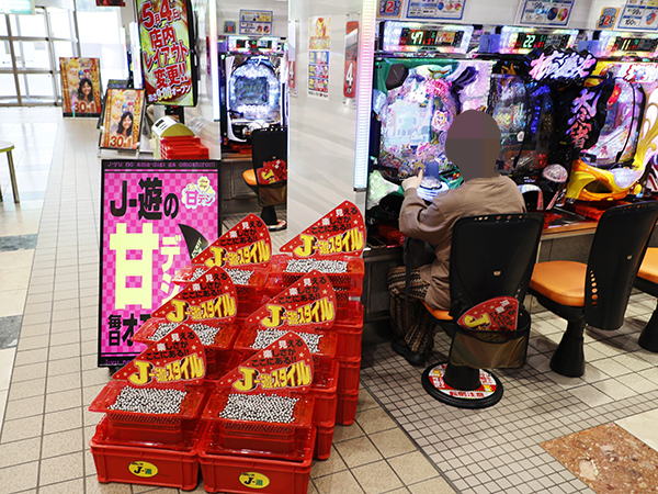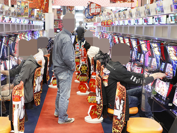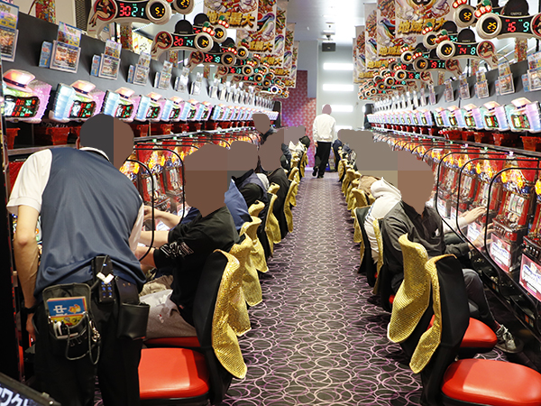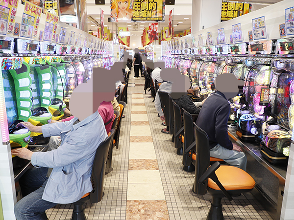 取材時は既に多くのプレイヤーが集結し、パチンコ・パチスロを問わずにぎやかな状況となっていた。