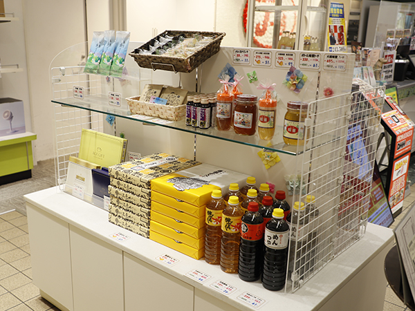 景品コーナーには特産品・インスタント食品・酒類など多彩なアイテムが揃っており、プレイヤーたちの目を引いていた。