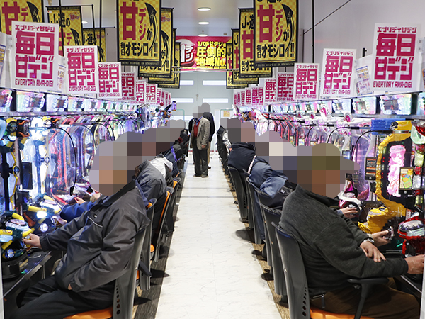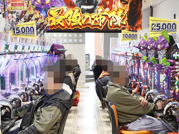 店内には多くのプレイヤーが来店。貸し玉料金を問わず、随所で盛り上がりを見せていた。