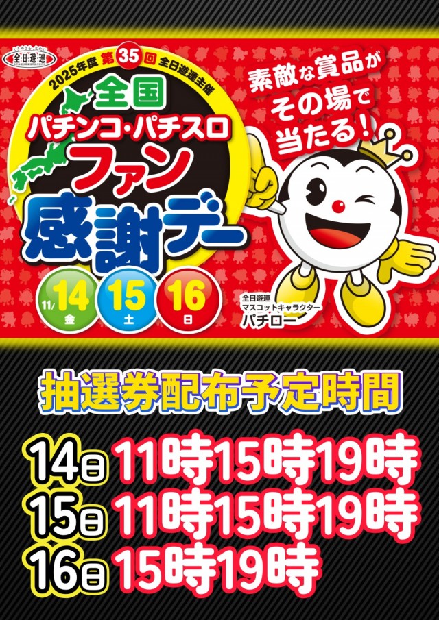 明日から全国パチンコ・パチスロファン感謝デー開催!!
