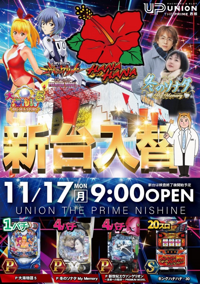明日11月17日(月)☆新台入替☆朝9時オープン!!