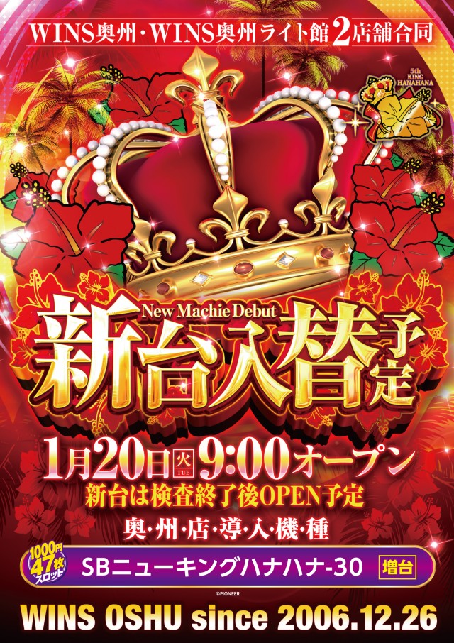 本日1月20日!!💡新台入替9時開店💡抽選は8:45より