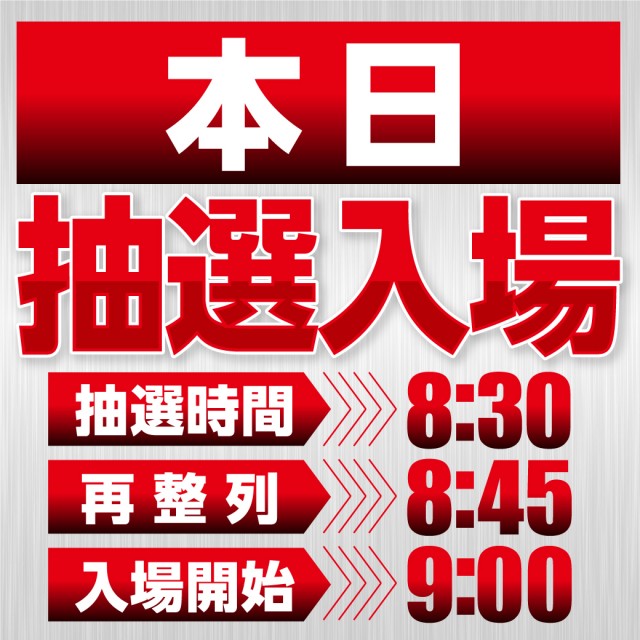 本日9時OPEN✨入場整理券は8時30分から配布致します!