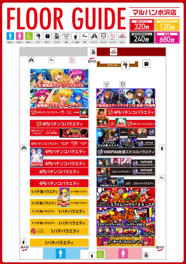 パチンコ 4円、100円88玉貸パチンコ/ パチスロ 1000円46枚貸スロット |