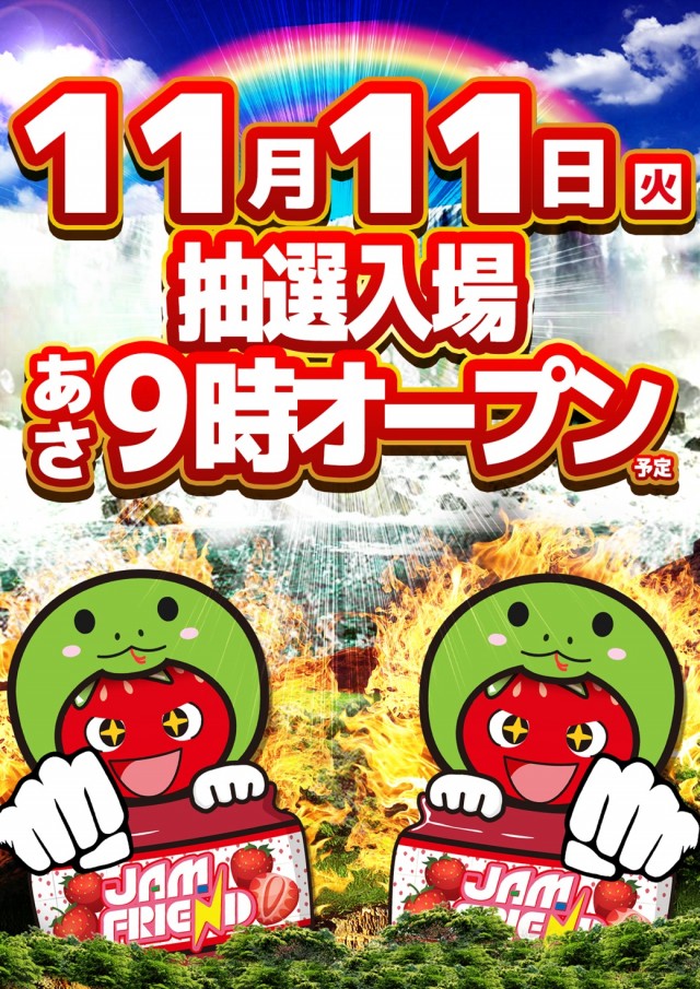⑪月⑨日朝9時オープン!入場は店頭にて抽選入場♪♪