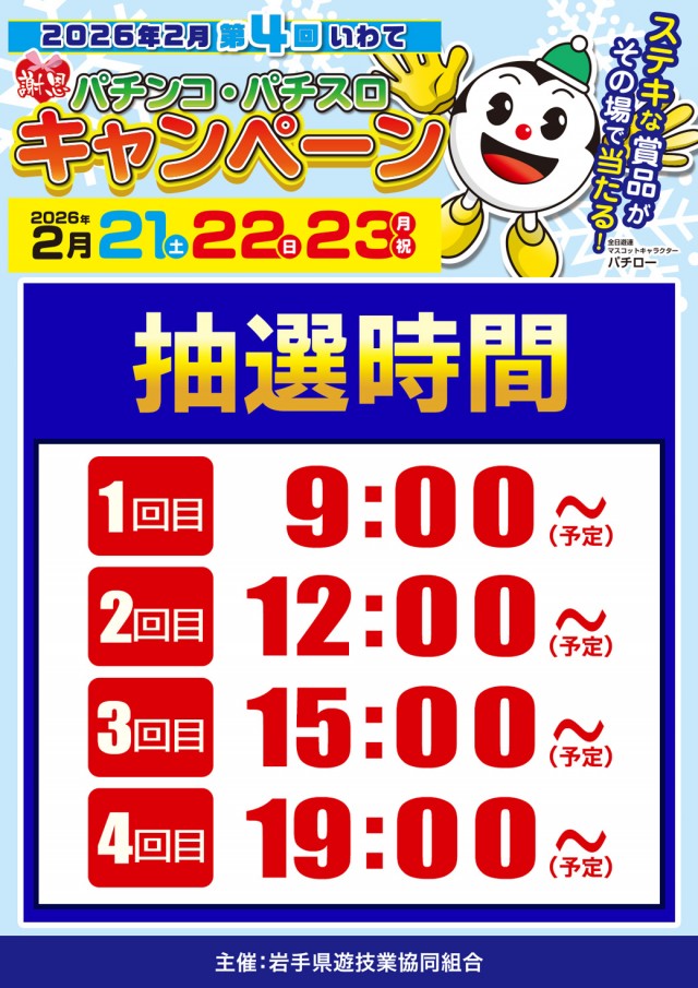 ②月㉒日朝9時抽選入場♪パチンコパチスロキャンペーン開催中