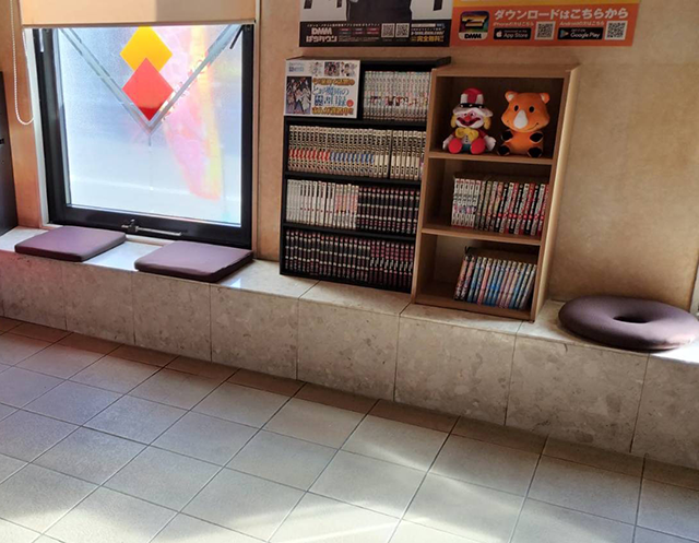 お茶が飲めるコーナーがあったり、漫画が用意されていたりと、落ち着いて休めそうな空間となっていました(=´ー`=)