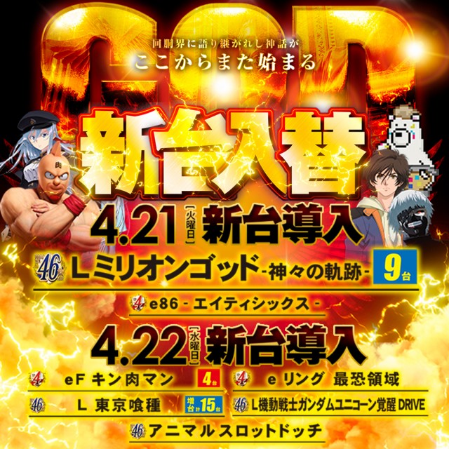 明日22日★新台入替・景品入荷★ 朝9時OPEN キングスへ