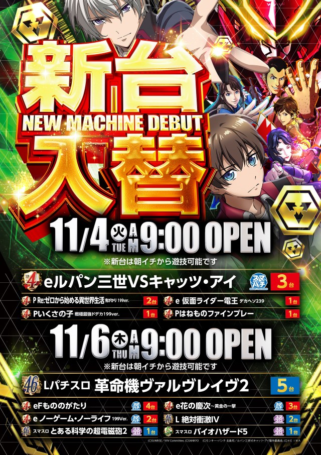 明日6日★新台入替★P.S全7機種導入!!是非キングスへ♫