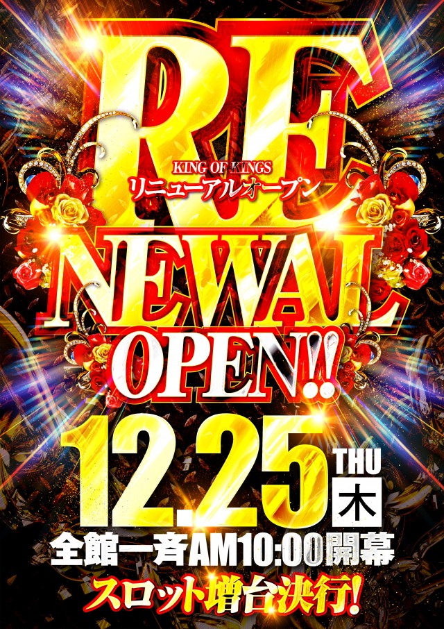 本日22日 全館 朝9時OPEN 是非キングオブキングスへ