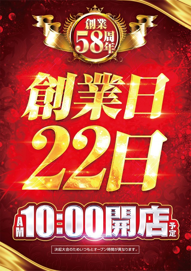 明日22日は創業日🌈9時30分抽選開始💨10時OPENです❗