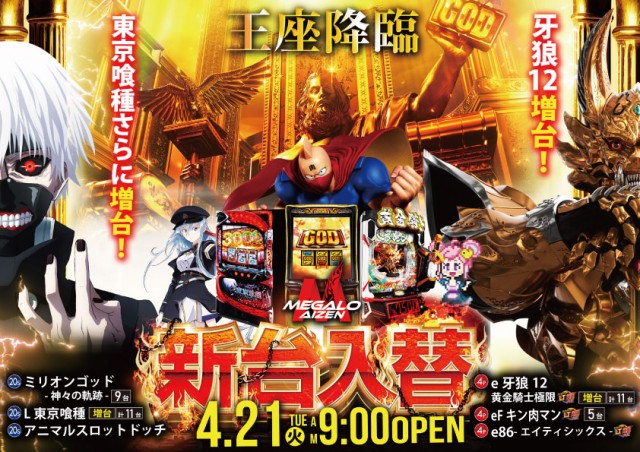 💛本日21日は新台入替💙 名機💎ミリオンゴッド💎が遂に登場!