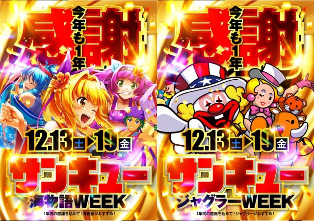 1年間の感謝を込めて!ジャグラー&海物語のサンキューWEEK