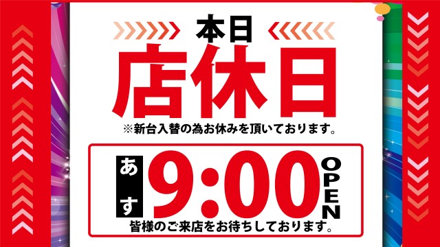 😌本日は店休日となります😌😃明日は新台入替となっております😃