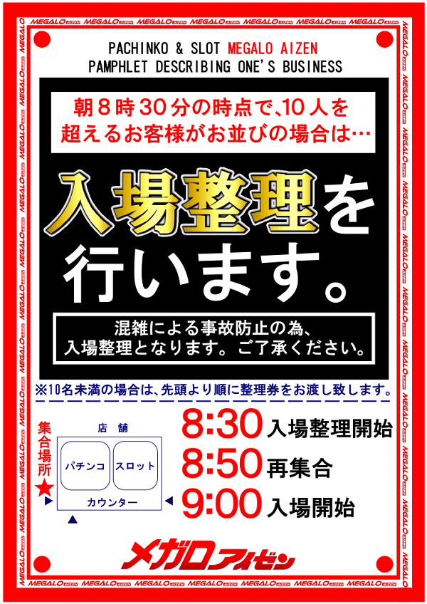 🌈本日3日🌈💣この後8:30入場抽選💣10月も是非メガロへ❗