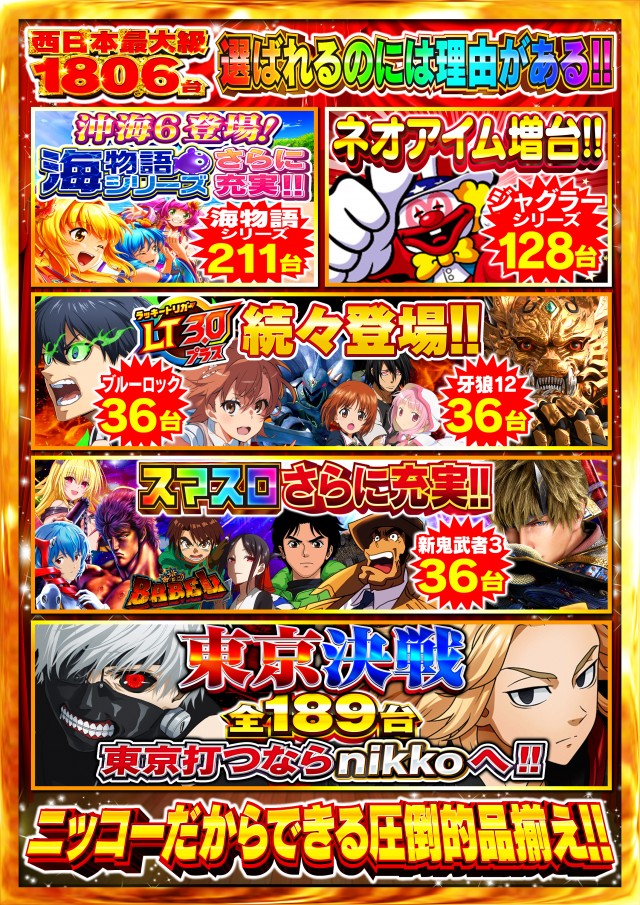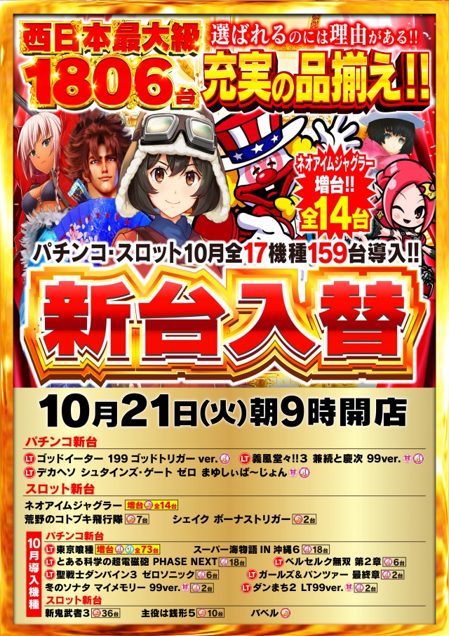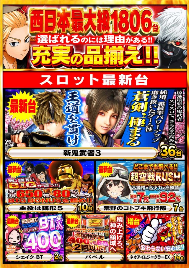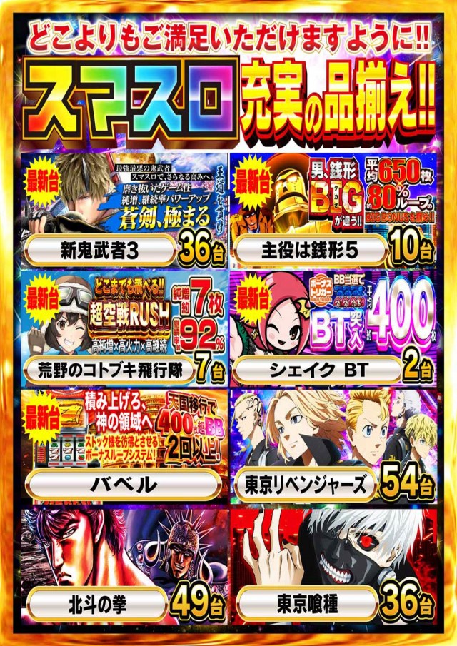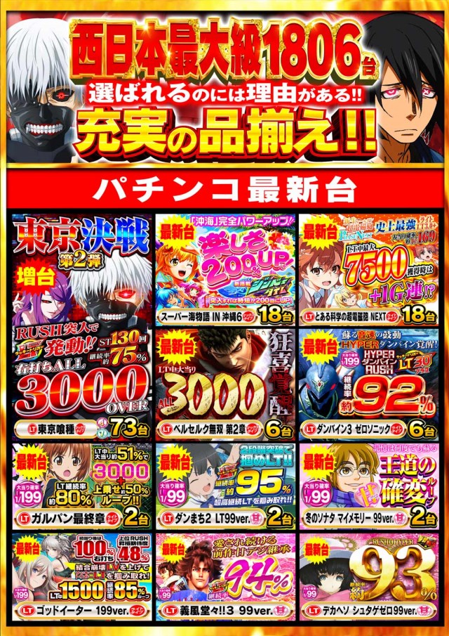 【年中無休】新台入替前日にお休みを頂く場合がございます。 |
