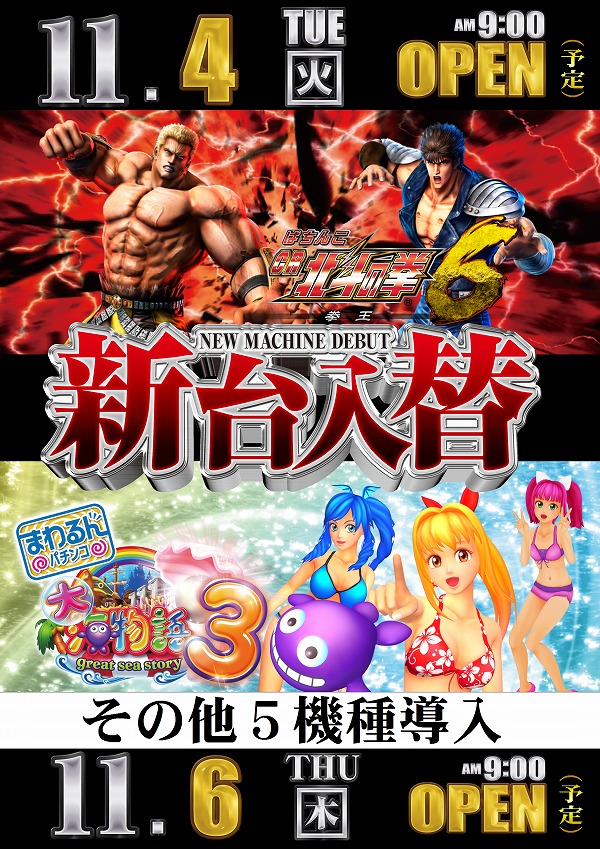マルハン高松店 北斗拳王&大海物語3 各36台導入!!