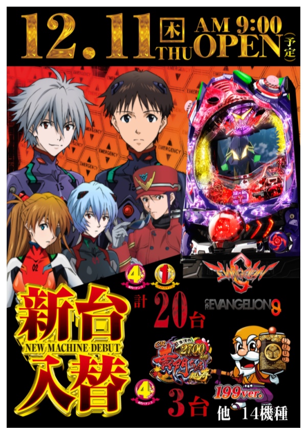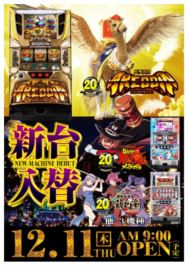 高松市11月25日(火)新台入替予定