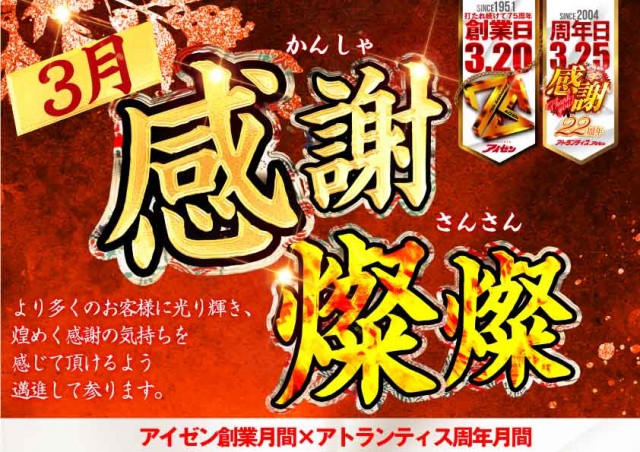 本日2日《3月も感謝燦燦❗️周年&アイゼン創業月間🌟》