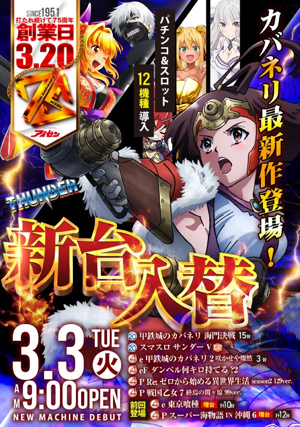 🌞🌞🌞本日3月3日《新台入替&トリプルスター乱舞》🌞🌞🌞