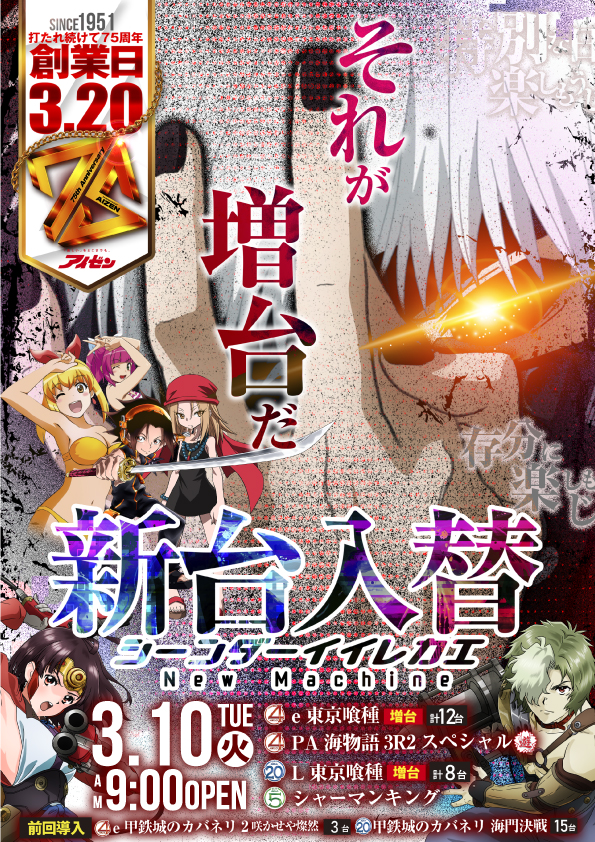 明日10日《🌟新台入替🌟》ご来店お待ちしております👍
