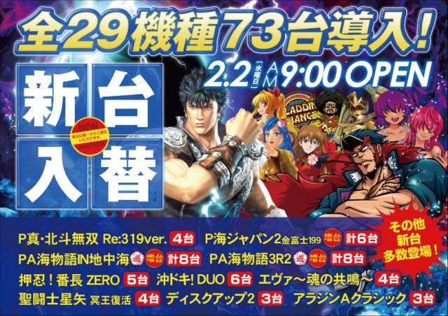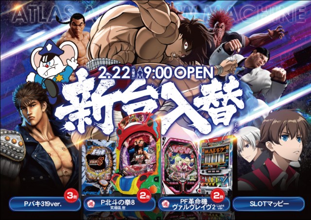 💖2022.2.2 アトラス新台入替💖全29機種73台導入!