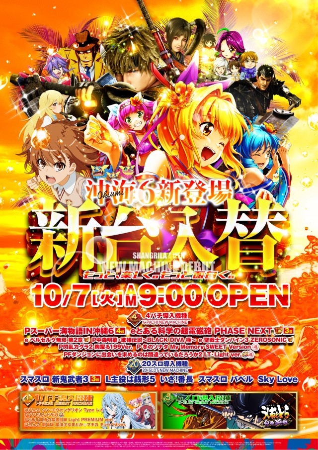 明日、10月7日(火)♫新台入替♫朝9:00オープン!