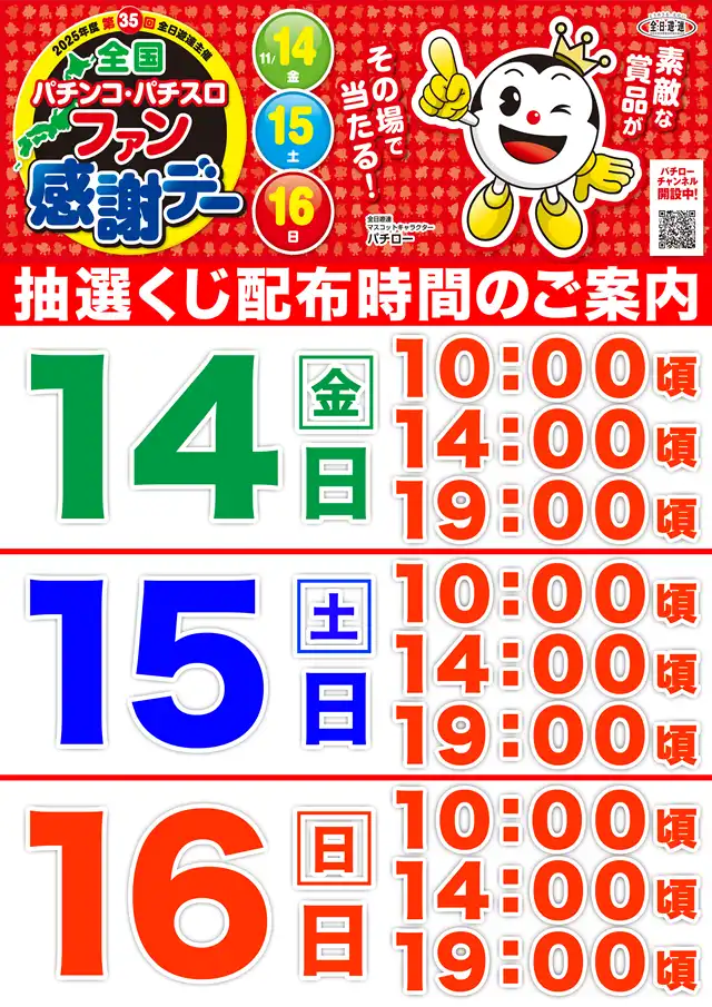 11月11日(火)新台入替&ミニキャラ解禁&店長ブログ更新!