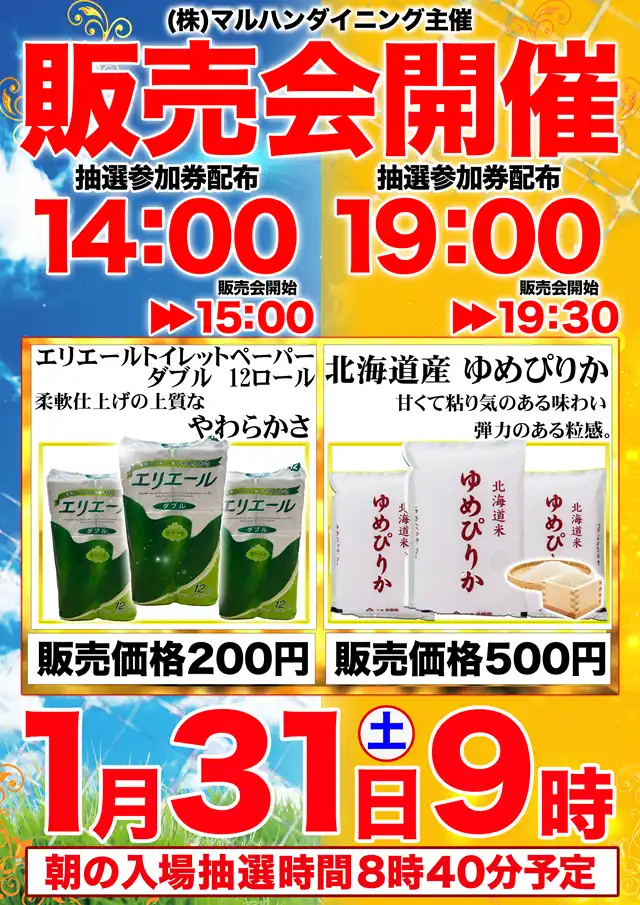 本日1月27日(火)朝9時開店!入場抽選は8時40分から!