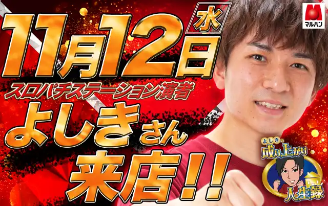 本日11月12日(水)スロパチステーションよしきさん来店!朝9時開店!