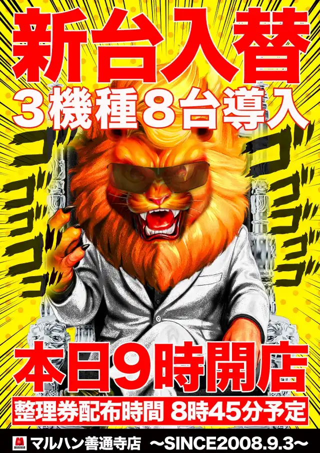 本日9時オープン!14時ごろより、総付景品配布予定!!